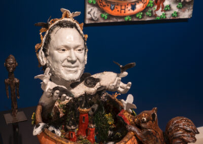 Nous avons réalisé un scan brut du visage de chacun d’eux avec diverses expressions, et Marlène a transformé ces scans en une série de sculptures en céramique colorées.